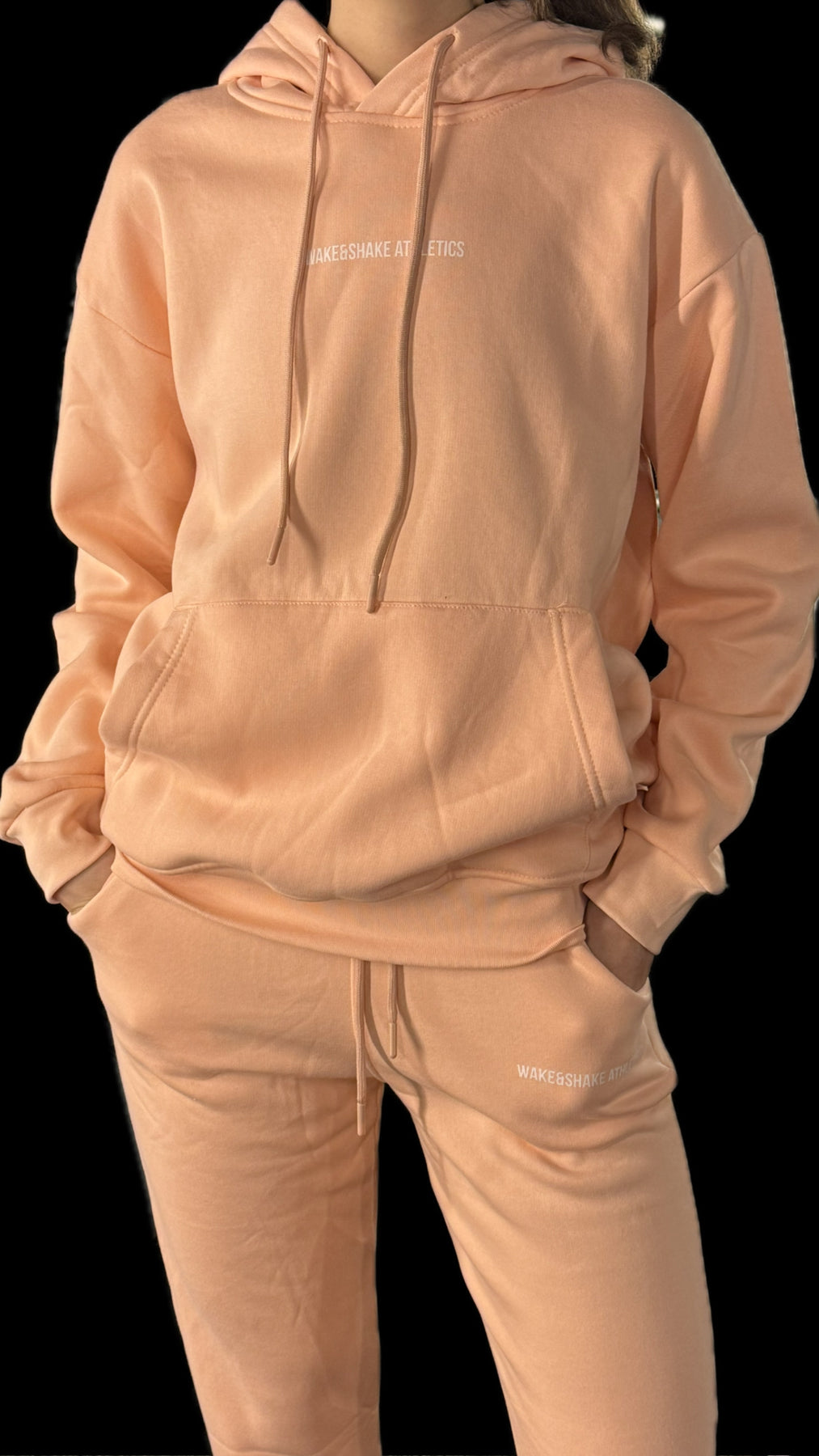 Stay comfortable and stylish with the Wake & Shake Athletics Premium Hoodie & Jogger Set in a sleek charcoal grey, soft peach or black. Designed for both performance and leisure, this athleisure set features a relaxed-fit hoodie with an adjustable drawstring and kangaroo pocket, paired with matching joggers that offer a tapered fit and secure waistband. Made from ultra-soft, high-quality fabric, this set provides warmth and breathability, making it perfect for workouts, lounging, or casual outings. Complete with subtle branding, it’s the ultimate blend of comfort and style.